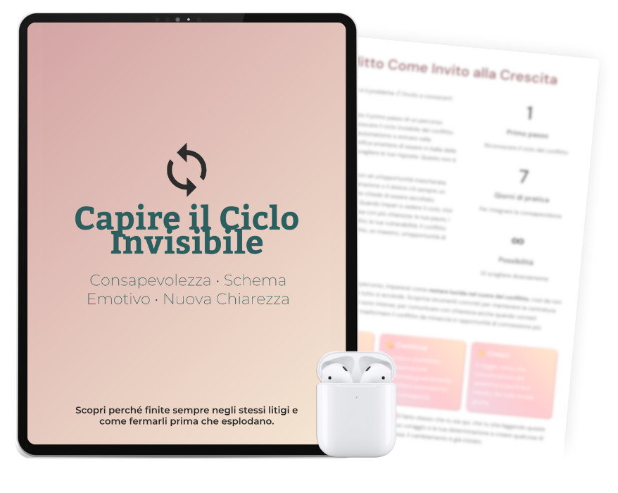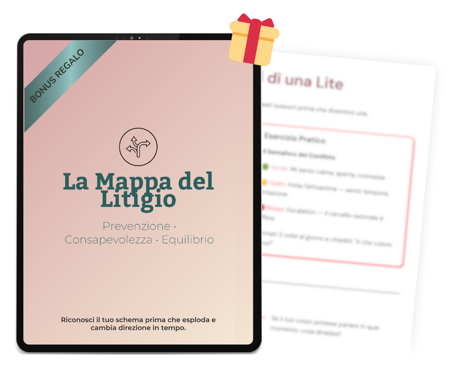 Questo prodotto non sostituisce terapia professionale. Per situazioni di abuso, violenza, o crisi relazionale grave, contatta immediatamente servizi di supporto qualificati o autorità competenti.